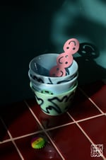 Chaque création est unique, marquée par le geste artisanal et une touche de bonne humeur. Des illustrations bien reconnaissables, colorées et qui racontent une histoire nous invitant à nous évader du quotidien.