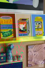 Chaque création est unique, marquée par le geste artisanal et une touche de bonne humeur. Des illustrations bien reconnaissables, colorées et qui racontent une histoire nous invitant à nous évader du quotidien.